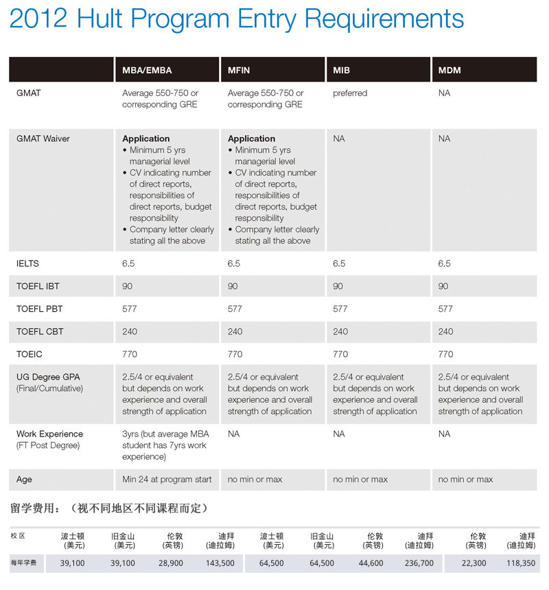 2012年霍特商学院入学要求